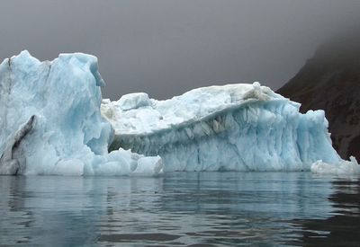Ice streams flow continuously, at the front of which their glacial tongues break loose into the Polar sea.